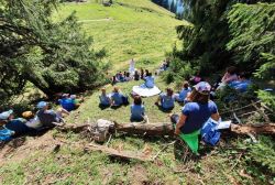 Anfang September trafen sich ca. 60 Bergfreund*innen zwischen 3 und knapp 83 Jahren am Bärenköpfle bei Immenstadt, um nach dem Aufstieg in kleinen Gruppen gemeinsam mit BDKJ-Präses Dominik Zitzler eine Messe mit Blick auf die umliegenden Gipfel zu feiern. „Das ist der Gipfel“ lautete auch das Motto des Gottesdienstes. Nach einigen Statements, was alles im positiven oder negativem Sinn „der Gipfel“ sein kann, wurde der Gedanke in der Predigt noch einmal aufgegriffen. Da war von „Gipfelerlebnissen“, von „Gipfelkonferenz“ mit Gott und von der Bibel als „Gipfelbuch“ die Rede. Bei sehr windigem aber sonnigem Wetter konnte dann in kleinen Gruppen der Weg nach unten wieder zu Fuß oder mit der Mittagbahn angetreten werden. Alle waren sich einig: es war ein schöner Tag – gerne wieder!