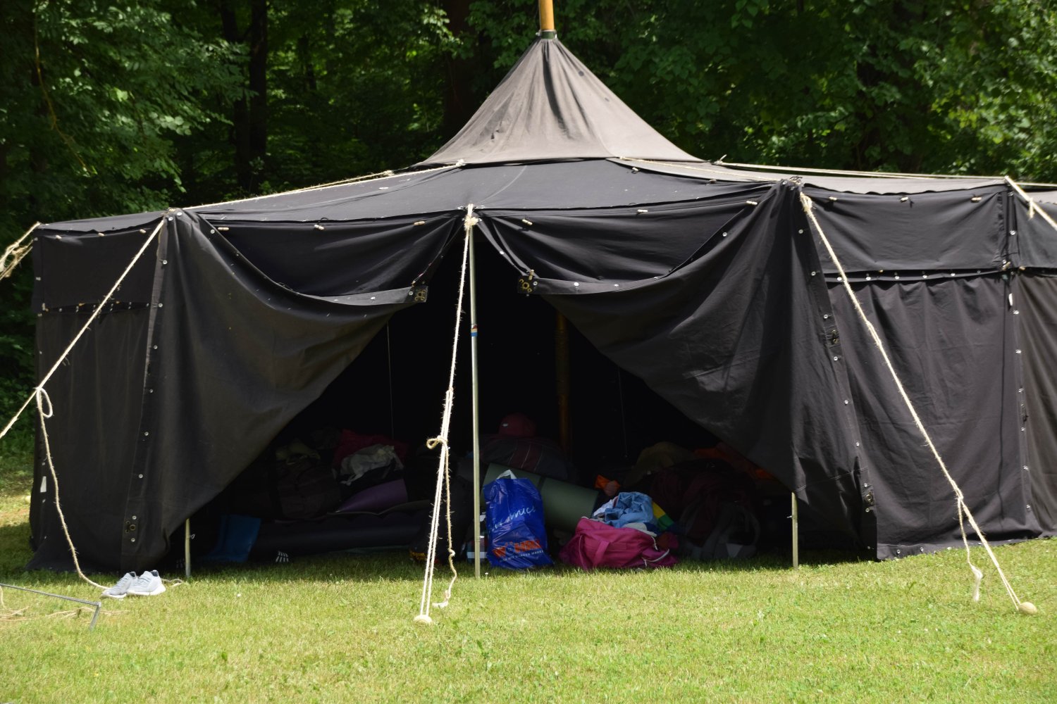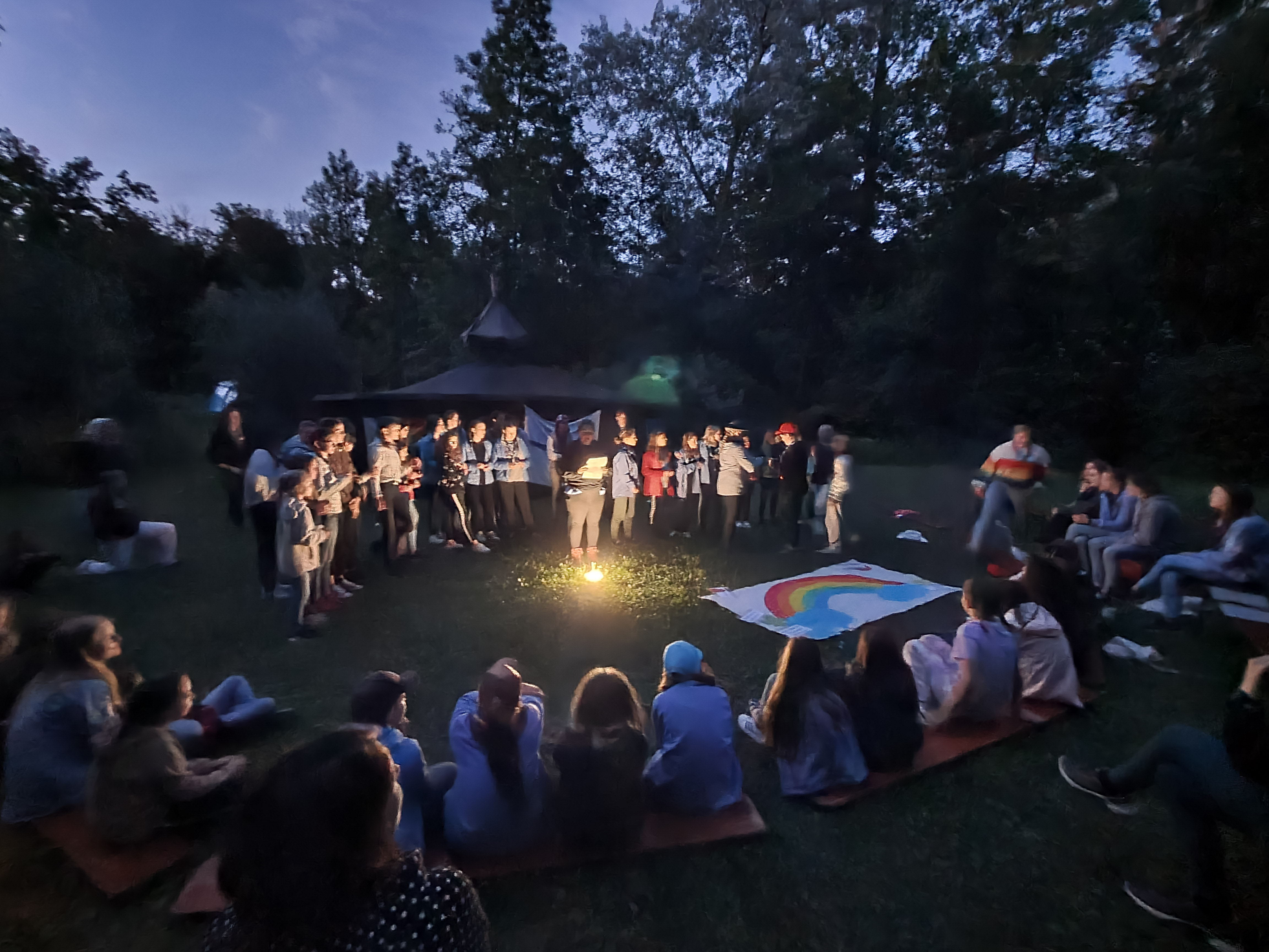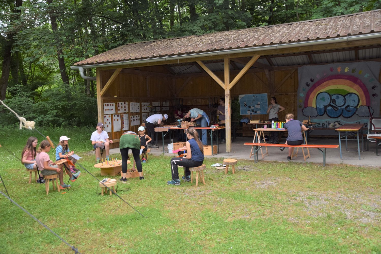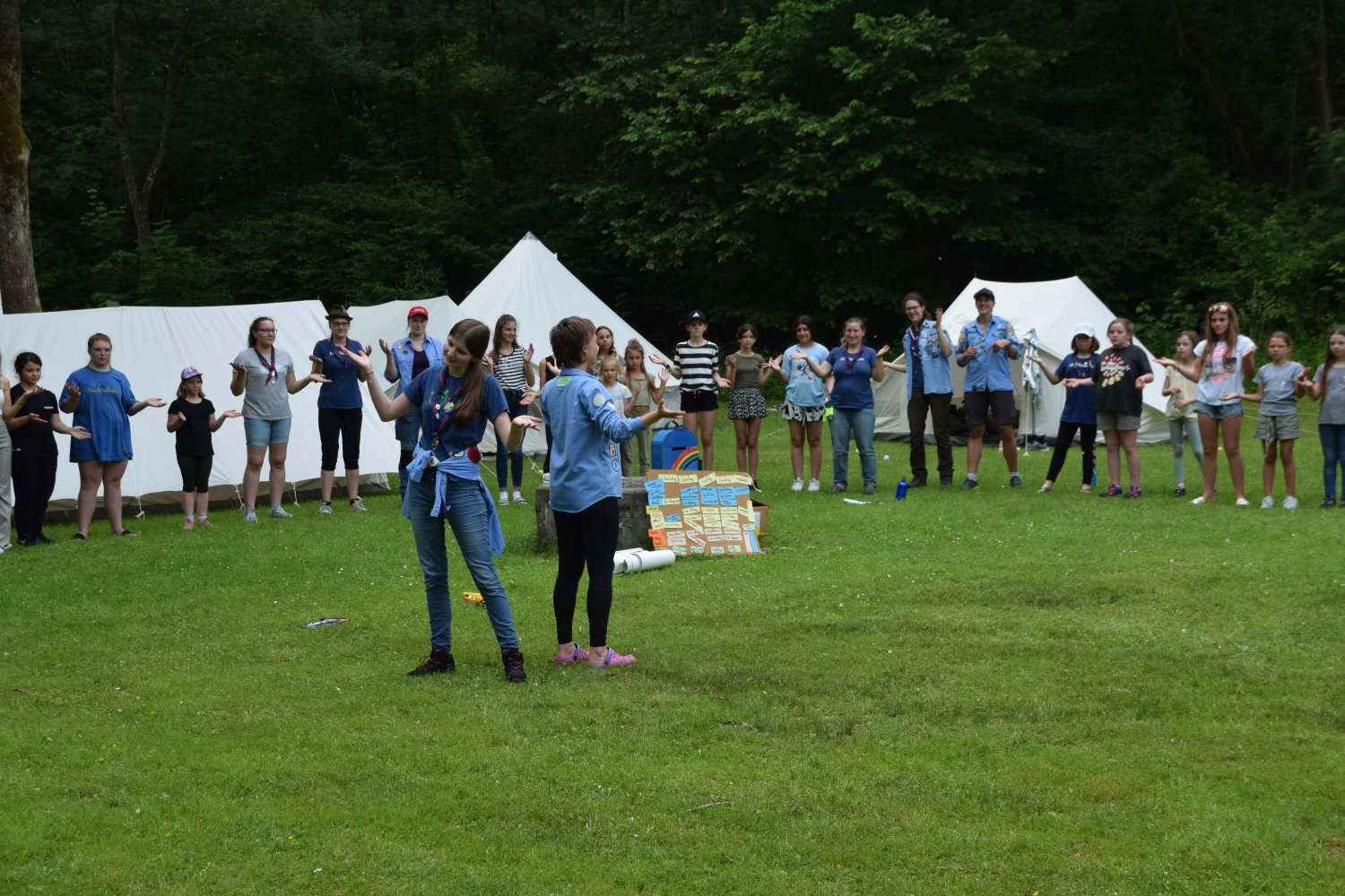 Im Regenbogenzelt fand auch der ReBoRa (Regenbogenrat) statt, an dem Pfadfinderinnen* allen Alters teilnehmen konnten, um ihre Meinungen, Wünsche und Bedürfnisse zu äußern. Gleichberechtigt mit den Leiterinnen* konnten sich alle austauschen, diskutieren und Kompromisse schließen. So konnten wir die basisdemokratischen Strukturen unseres Verbands auch auf dem Lager aufrechterhalten und allen Teilnehmerinnen* eine Stimme geben.