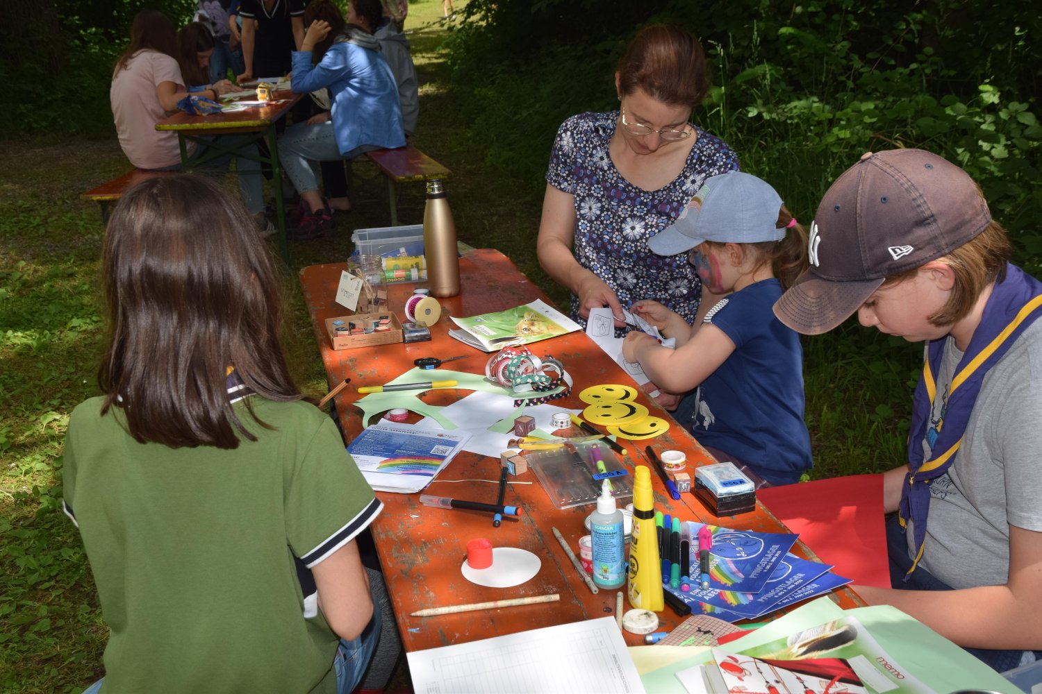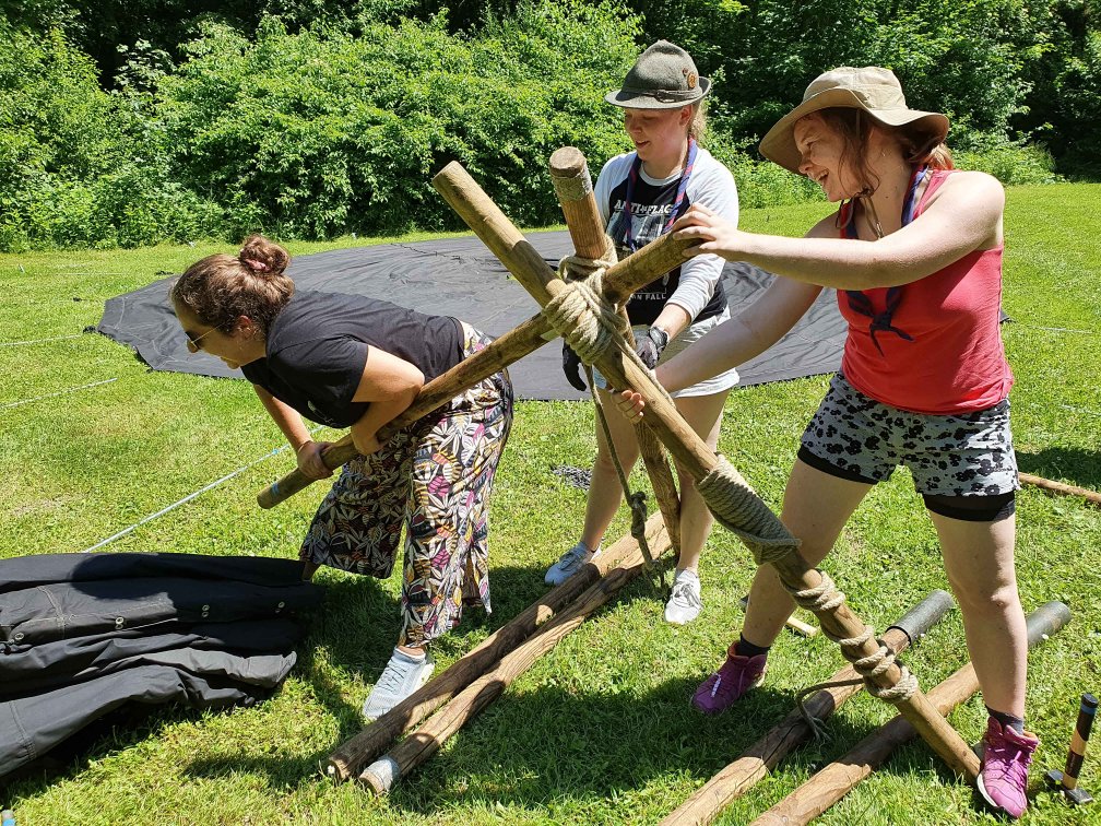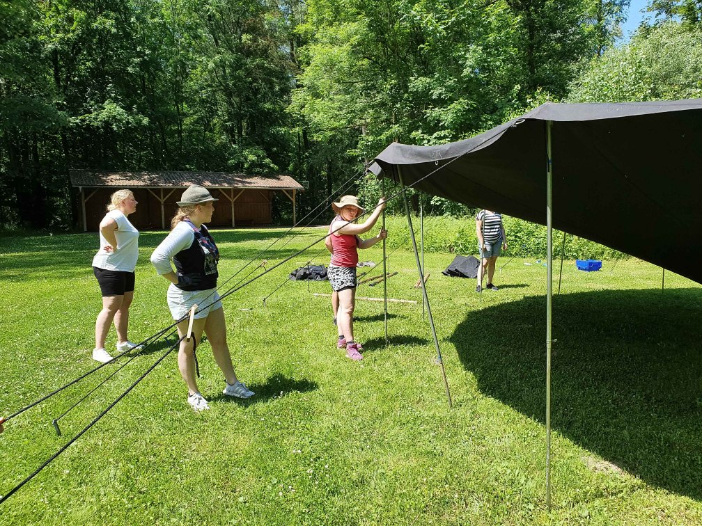 Passend zum Thema ein Rucksack voller Abenteuer gab es auch die Möglichkeit das Spezialabzeichen Abenteurerin* zu erlangen. Dafür mussten Workshops absolviert werden, die für das Leben als Pfadfinderin* und als Abenteuerin* wichtig sind: vom Erlernen von Wegzeichen und einem Grundwissen zum Hajk, das richtige packen eines Rucksacks, über Zeltkunde und Werkzeugkunde, bis zum Workshop Holz und Feuer und Lagerfeuerküche war alles dabei. Wir sind besonders stolz nach dem Lager über 70 kleine und große Abenteuerinnen* begrüßen zu dürfen!