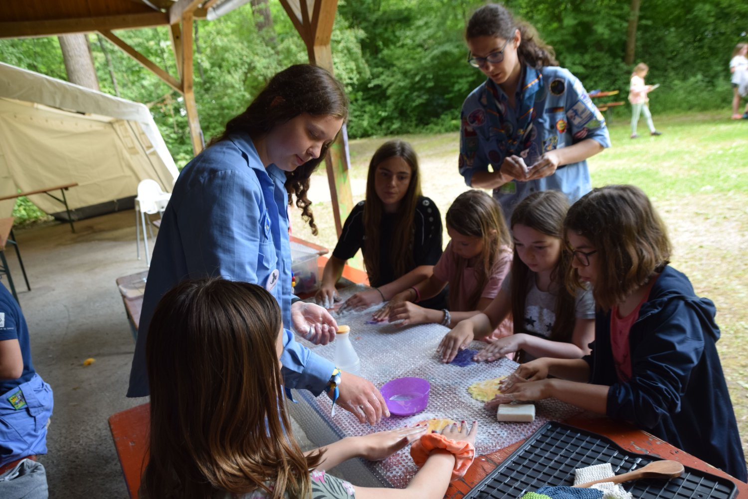 Die Pfadfinderinnen*tauchten in eine Welt voller Abenteuer ein: ob actionreich beim Kanufahren oder Parcour oder in kreativen Abenteuern beim Schnitzen, Upcycling, beim Fototransfer auf Holz oder Handlettering, beim Seife gießen und selber machen von Naturkosmetik konnten sich die Teilnehmerinnen* ausprobieren. Wer anschließend noch nicht genug hatte, konnte sein Abenteuerbuch selbst gestalten oder Emaille Tassen bemalen, um perfekt für das nächste Abenteuer gerüstet zu sein.