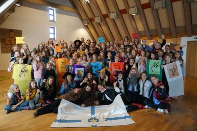 Auch der diesjährige Kompasskurs hat sich eine magische Welt erträumt, mit Zauber*innen, Fabelwesen und vielen wundersamen Begegnungen und hat diese für 95 Mädchen und Frauen Wirklichkeit werden lassen! Das diözesanweite Wichtelwochenende fand unter dem Motto „Magisches WiWo“, angelehnt an Harry Potter statt. Statt nach Hogwarts ging es auf die magische Zauberschule „Trifolium“. Am ersten Abend wurden die angehenden Zauberschüler*innen in eines der sechs Häuser aufgeteilt: Elefant, Hase, Bär, Fuchs, Eule oder Reh. Mutig wie Harry verteidigten sich die ca. 70 Wichtel gegen die dunklen Künste, bemalten Kräutertöpfchen, waren klug wie Hermine beim Fantasyrollenspiel und fanden abends am Lagerfeuer den zuvor entführten Hagrid wieder! Glücklich, mit neuen Zauberstäben und viel zu erzählen ging es am Sonntag nach dem Quidditch-Turnier wieder zurück in die Muggel-Welt.